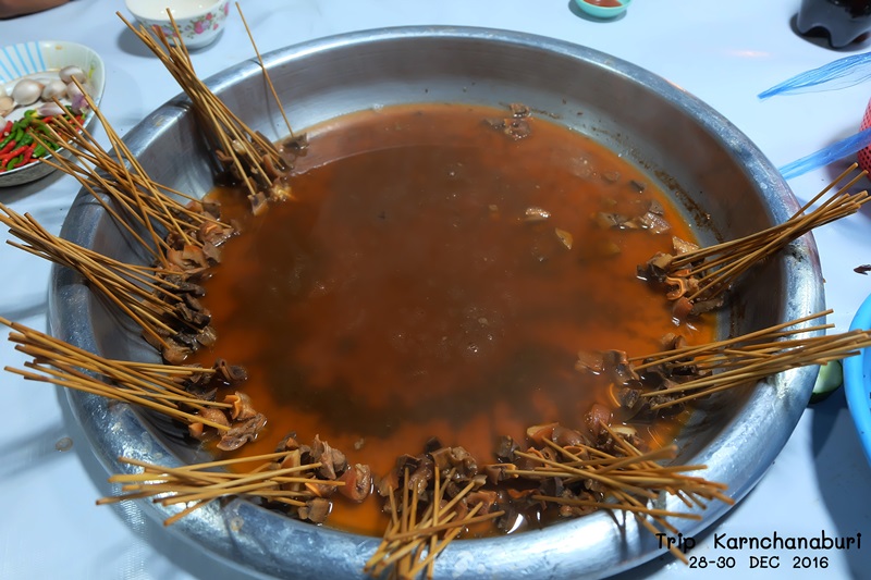 เสดแล้วเราก้อมาเดินตลาดสังขละกัน มากินหมูจุ่มไม้ล่ะบาท ต้องร้านหน้า 7-11 นะ สะอาด กว่าร้านในตลาด