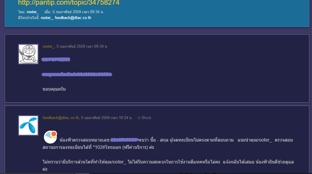 หลังไมค์ AIS ตอบกลับภายใน 10 นาที แต่ DTAC 10 ชั่วโมงแล้ว ยังกริบ.....