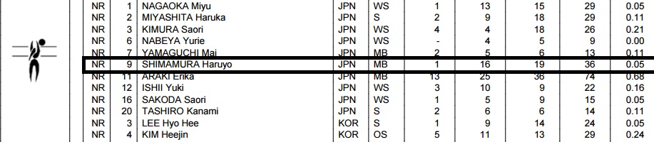 ส่วนนี่สถิติในโอลิมปิค ทั้งทัวร์ชิมามูระสามารถkil block ได้ทั้งหมด 1ลูก บล็อกดีมากกกกกกกกกกกกก มาตรฐานสูงจริงๆ