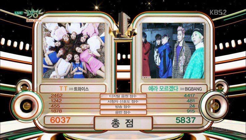 ส่วนผู้ชนะสัปดาห์นี้ ได้แก่ #TWICE จ้า 170317(ประกาศผลในเว็บไซต์) http://www.kbs.co.kr/2tv/enter/musicbank/hotnews/chart/index.html?bbs_pr=/mode:2/seq:1102952/goto_page:1 *คลิปการแสดงวีคที่แล้ว