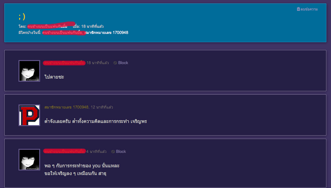 ความรักที่ซ่อนไว้ สยอง, สมาชิกหมายเลข 1476906 สยอง, สมาชิกหมายเลข 859932 สยอง, ฉันสวยเพราะคิดว่าฉันสวย สยอง, apistona สยอง, NewYork Cheesecake สยอง, หัวไชเท้าผู้กล้าหาญ ถูกใจ, ไอ้บ้าไอ้บี้ไอ้โบ้ไอ้เบ๊ ถูกใจ, ไอติมจะครองโลก สยอง, HeavenZeeN สยองรวมถึงอีก 46 คน ร่วมแสดงความรู้สึก