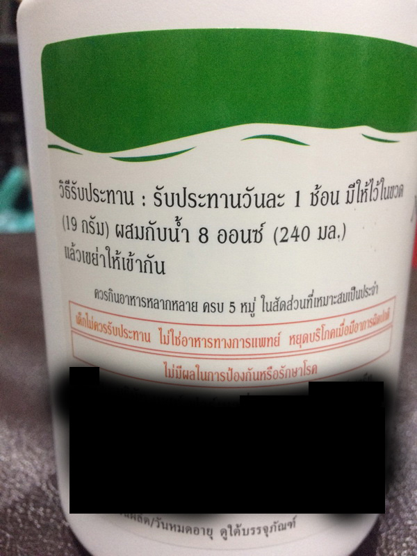 เขาซื้อมาให้ลูกเขาซึ่งตอนนี้อายุประมาณ 4 เดือนกว่า ไอ้เราก็เห็นว่าสีมันประหลาด แถมข้างผลิตภัณฑ์ยังระบุว่าเด็กไม่ควรรับประทาน