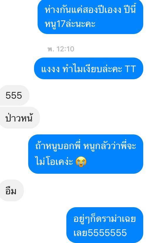 และก็มาหยุดยาวปีใหม่เราก็ทักไปถามพี่เค้าว่าปีใหม่ไปเที่ยวไหนพี่เค้าก็ตอบมาว่ายังไม่รู้แต่ที่แปลกคือพี่เค้าถามเรากลับว่า "แล้วหนูไปเที่ยวไหนเนี่ย" ซึ่งทำให้เราหวีดแรงมากเพราะปกติพี่เค้าจะไม่ค่อยชวนเราคุย ช่วงนั้นพี่เค้าก็จะมีแบบขอตัวไปเล่นเกมแปป ส่งรูปเล่นเกมมาให้ดูบ้าง เลยทำให้เราแอบคิดไปเอง และก็เราก็ถามพี่เค้าไปว่าปีใหม่อยากได้ของขวัญอะไรมั้ย พี่เค้าก็ตอบมาว่า "ขอให้หนูตั้งใจเรียน" เราก็แอบหวีดอีกแล้ว