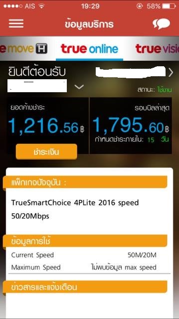 ผมใช้แพคเกจ True smart choice 4 1,299 บริการมาประมาณ 1 ปี ก็ไม่มีปัญหาอะไรครับ แต่เรื่องก็เริ่มเกิดตอนย้ายสถานที่ติดตั้ง เมื่อปลายเดืนอกรกฎาคมต่อเดือนสิงหาคม ก็เกิดปัญหา แพคเกจ True smart choice 3 1