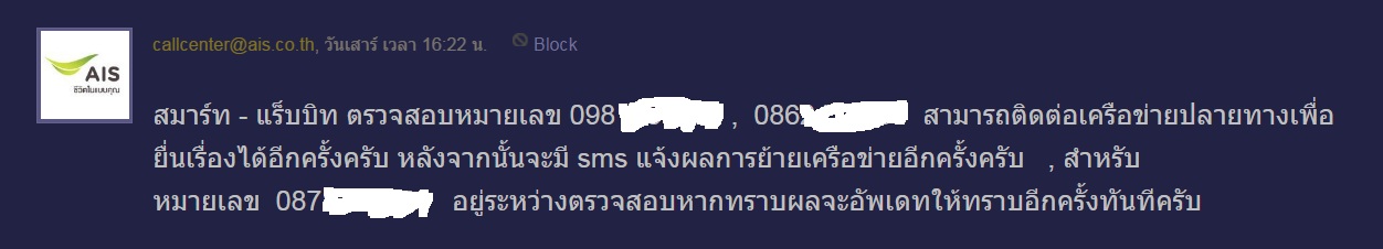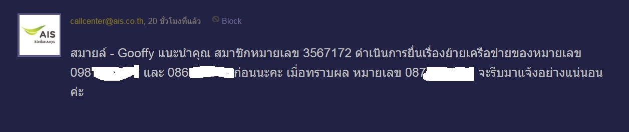 และแล้วมันก็หลอกผมทางหลังไมค์ว่าให้ผมส่งเรื่องให้ทางทรูยื่นเรื่องย้ายค่ายได้อีกครั้ง