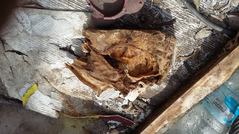 วันที่ 28 ธ.ค.เข้าไปเก็บกระดูก ไม่อยู่ในสภาพกระโหลก แตกหักเป็นชิ้นส่วนเล็กๆ ไปตอนสามทุ่มค่ะ มืดมาก ไม่รู้จะทำไรได้ค่ะ เลยจุดธูปไหว้เจ้าที่เพราะไม่รู้จะทำยังไง และ โพสหาบ้านให้หมา 2 ตัว แต่โพสในเฟสตัวเอง