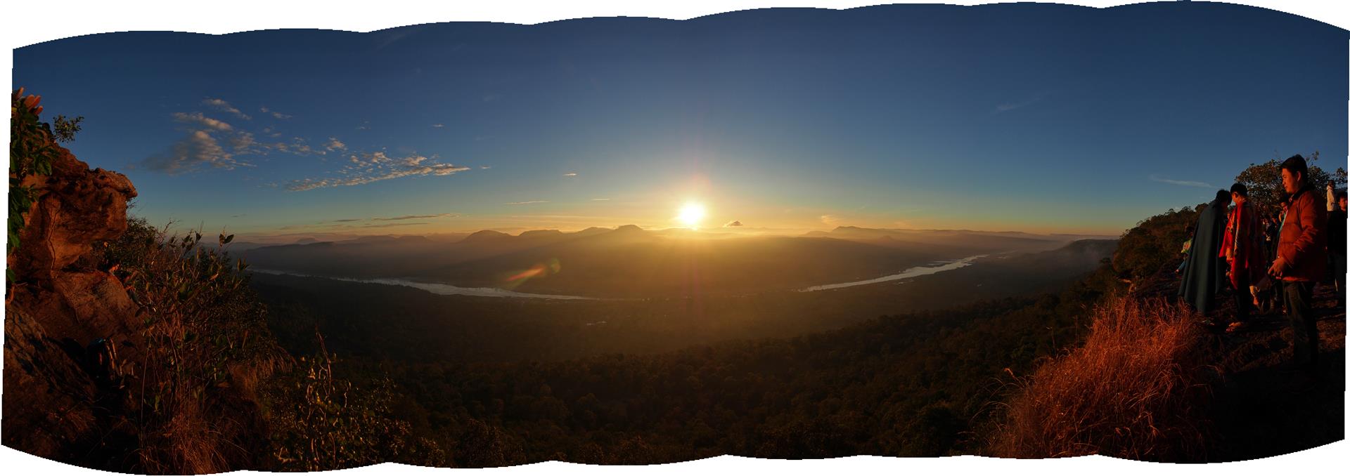 จุดดูพระอาทิตย์ขึ้นเป็นหน้าผาตัด ด้านล่างก็ยังมีหมู่บ้านเล็กๆริมแม่น้ำโขงอยู
