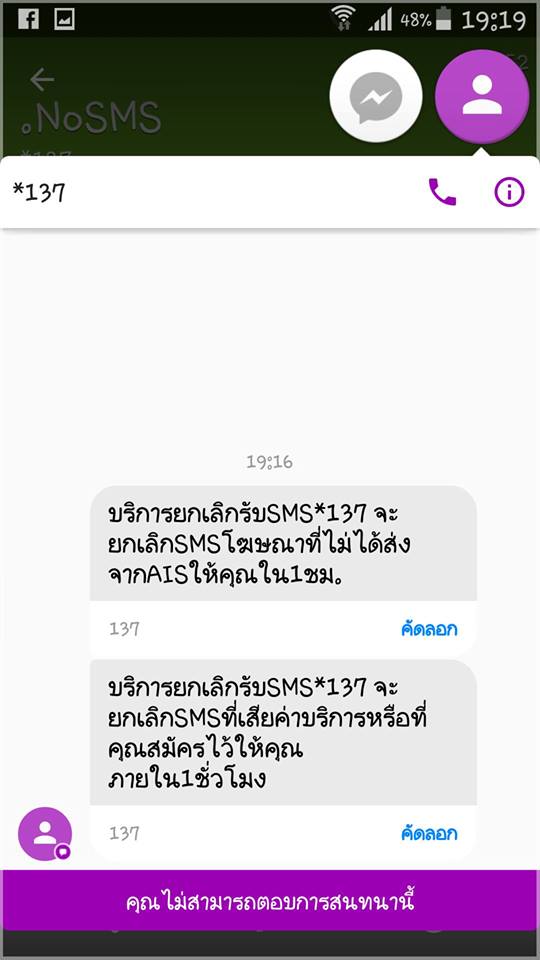 เปลี่ยนค่ายมือถือ จาก ทรู มาใช้ บริการ ค่าย AIS มาเจอบริการ ข้อความไม่ระบุผู้ส่ง อีกเหมือนเดิม...