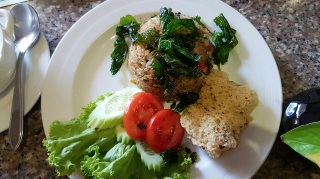 เป็นข้าวผัดกะเพราปลาสลิดที่แร่ยอมาก แถมยังมีปลาดุกฝู มาข้างๆอีก