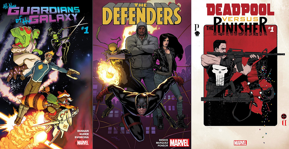 (อันนี้เพราะซีรีย์ชัวร์ป้าบ) เดิมลุคเคจ แดนนี่แรนด์ เจสสิก้าโจนส์ ก็ตัวติดเป็นตังเมอยู่แล้ว (ลุคเคจกับโจนส์อาจจะมีปัญหาใน Jessica Jones เพราะเจ้าเบนดิสแต่ง) แต่ด้วยปัญหาข้างถนนแบบฉบับก๊อดฟาเธอร์ทำให้แดร์เดวิลมาร่วมด้วย ในหัวเรื่อง Defenders คนแต่งกับคนวาดคือคู่หูที่เคยทำ Miles Morales: Spider-Man กับ Civil War II มาแล้ว (ได้ยินว่าถ้าเบนดิสแต่งเรื่องประมาณว่า...ไม่ไกลระดับโลกแค่ระดับข้างถนน...ก็ออกมาดีนะ)