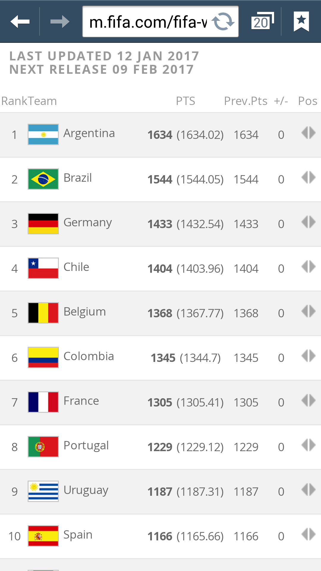 ฟีฟ่าได้ประกาศคะแนน fifa ranking ของทุกชาติ ประจําเดือนตุลาคม Top 10 โลก 1. Germany 2. Brazil 3. Portugal 4. Argentina 5. Belgium 6. Poland 7. France 8. Spain 9