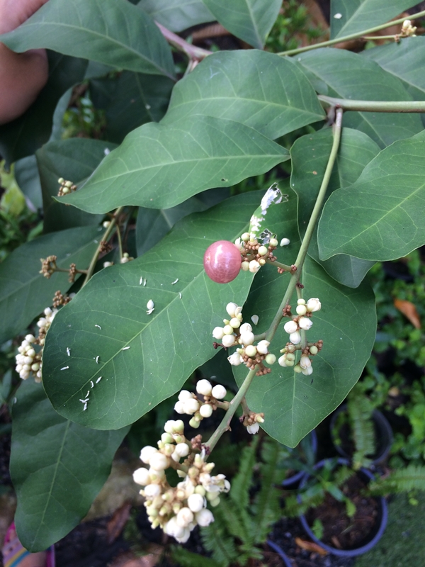 สอบถามค่ะ ต้นไม้นี้คือต้นอะไรคะ มีลูกเป็นลูกกลมๆตอนลูกสดๆจะเป็นสีเขียว ไม่น่าจะกินได้ คาดว่าเป็นไม้ประดับ เพราะปลูกอยู่ริมทางใกล้ๆบ้าน ไม่มีใครเก็บกินค่ะ แหะๆๆ
