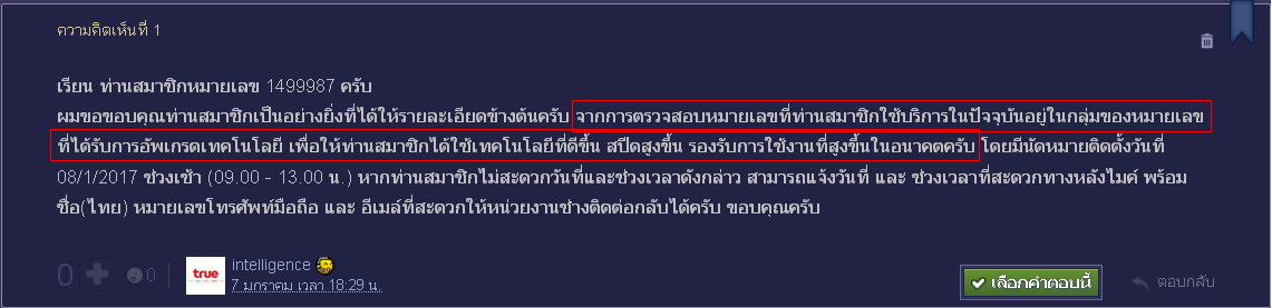 ขอบคุณทรูและคุณ intelligence ที่ช่วยติดตามเคสให้ค่ะ