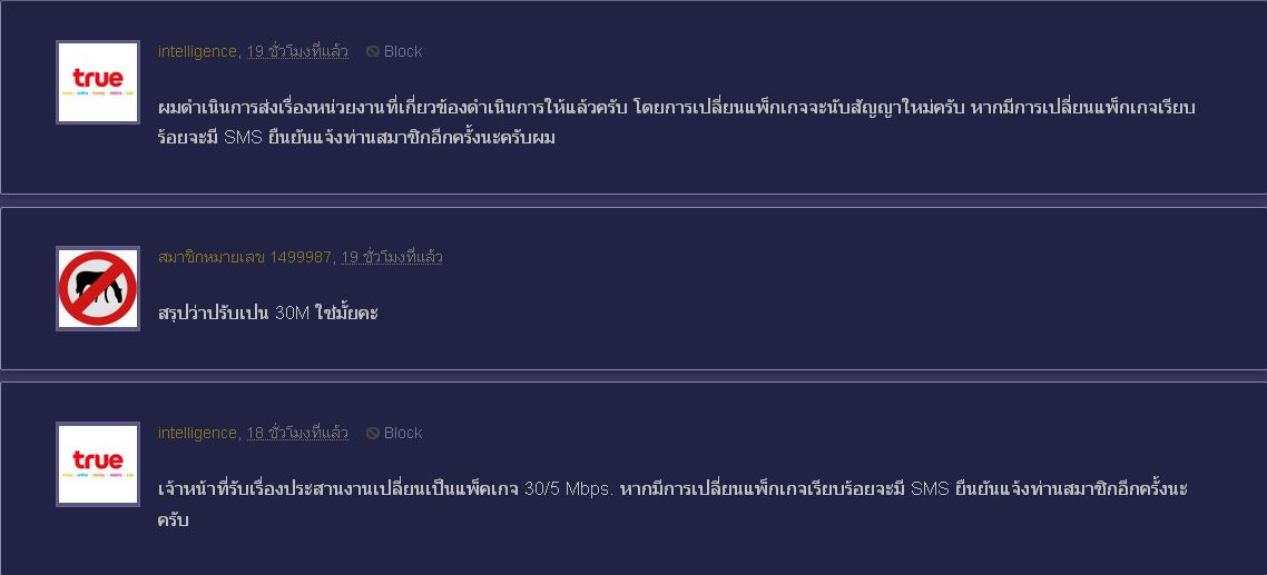 มาเมื่อวานเห็นกระทู้โปรใหม่ค่ะ 599 บาทได้ 30M มีแต่เน็ตอย่างเดียว จขกทอยากเปลี่ยนไปใช้แพคนั้นค่ะ เลยหลังไมค์เข้าไปถามคุณ intelligence ปรากฎว่า