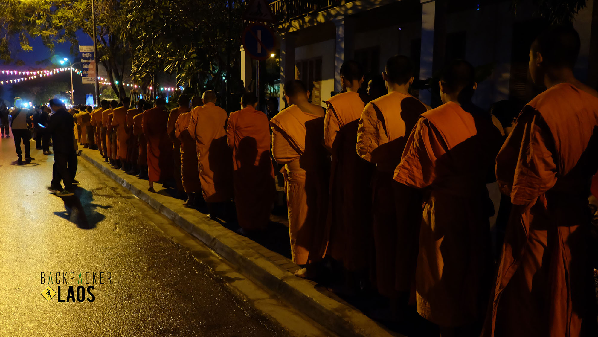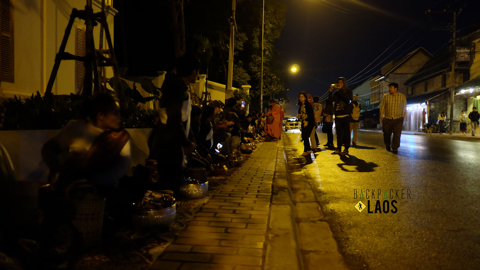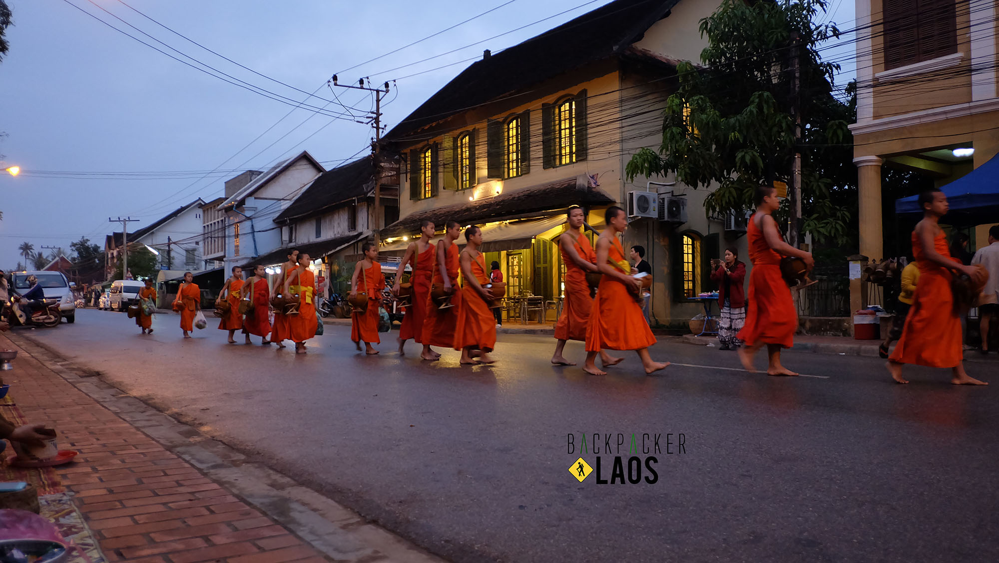 เราตื่นเช้าเพื่อมารอตักบาตรกัน อากาศเย็นมากๆ เหมือนจะมีละอองพัดเต็มเมืองเลยนะ