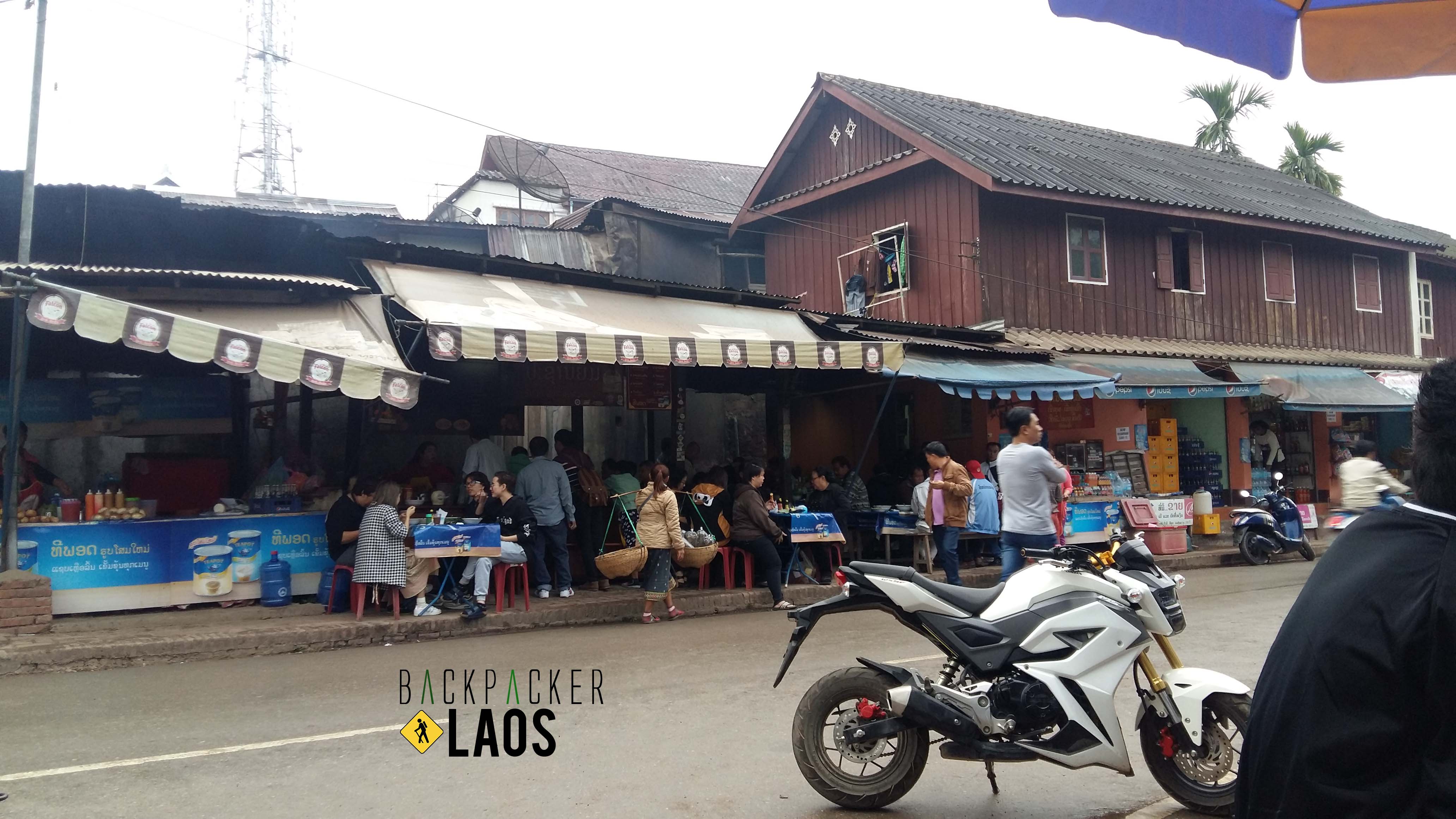 หลังจากเราใส่บาตรกันแล้ว เราก็เดินไปหาร้านอาหารเช้ากิน จากการหาข้อมูลมา