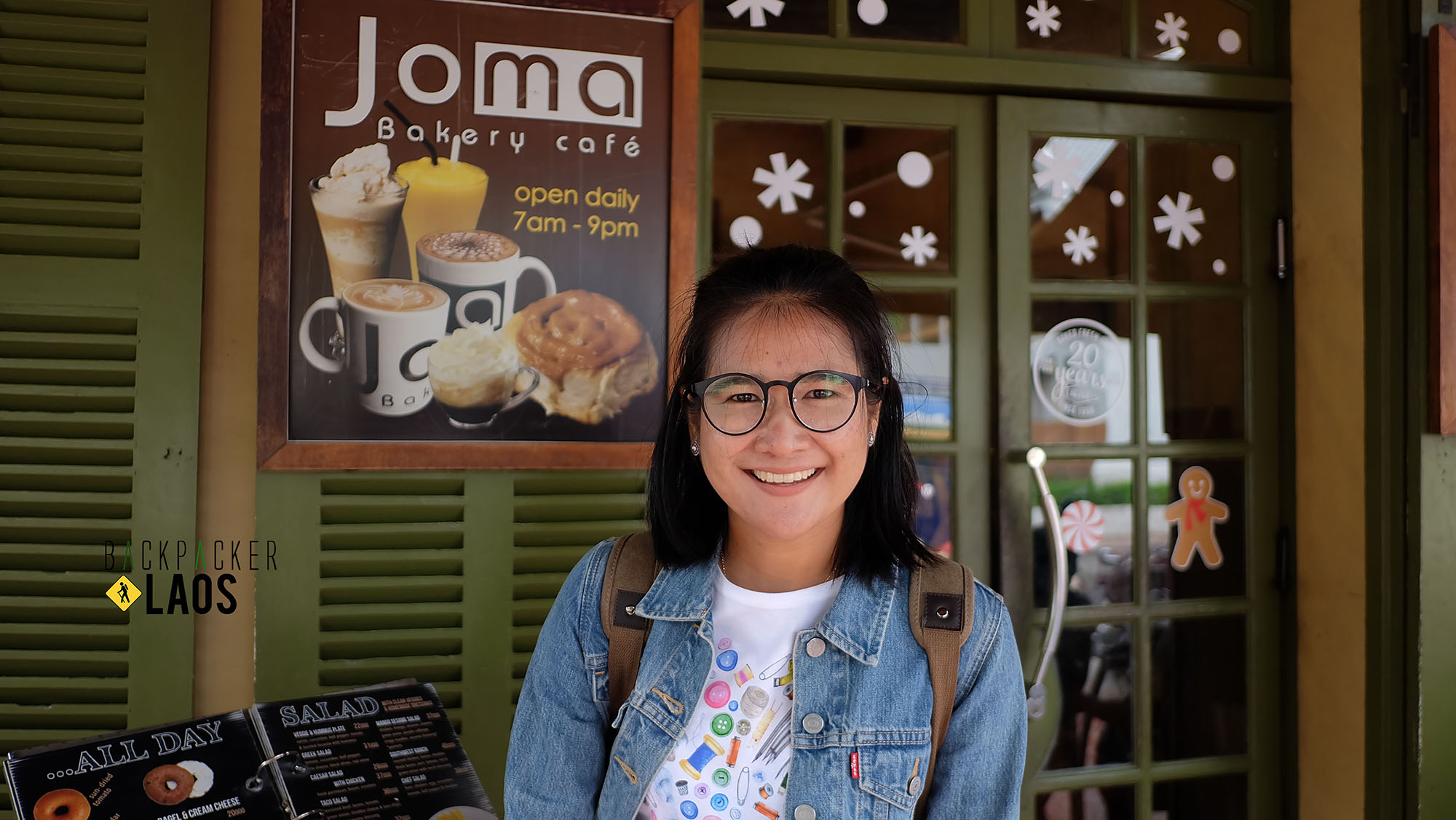 ร้านกาแฟ โจมา เบเกอรี่ คาเฟ่ (สาขาหลวงพะบาง) นั่นเองครัช เรามานั่งพักกันที่ร้านนี้ เเละกะจะรอเวาลาขึ้นรถ