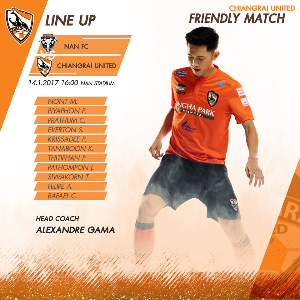 โฉมหน้า 11 ผู้เล่นตัวจริงเชียงรายอุ่นเครื่อง เจอน่าน วันนี้ 16.00 น. ไม่มีถ่ายทอดสด