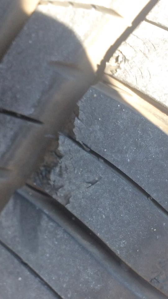 หน้ายางฉีก น่าจะเบียดกับฟุตปาธมาครับ แบบนี้อันตรายไหมครับ