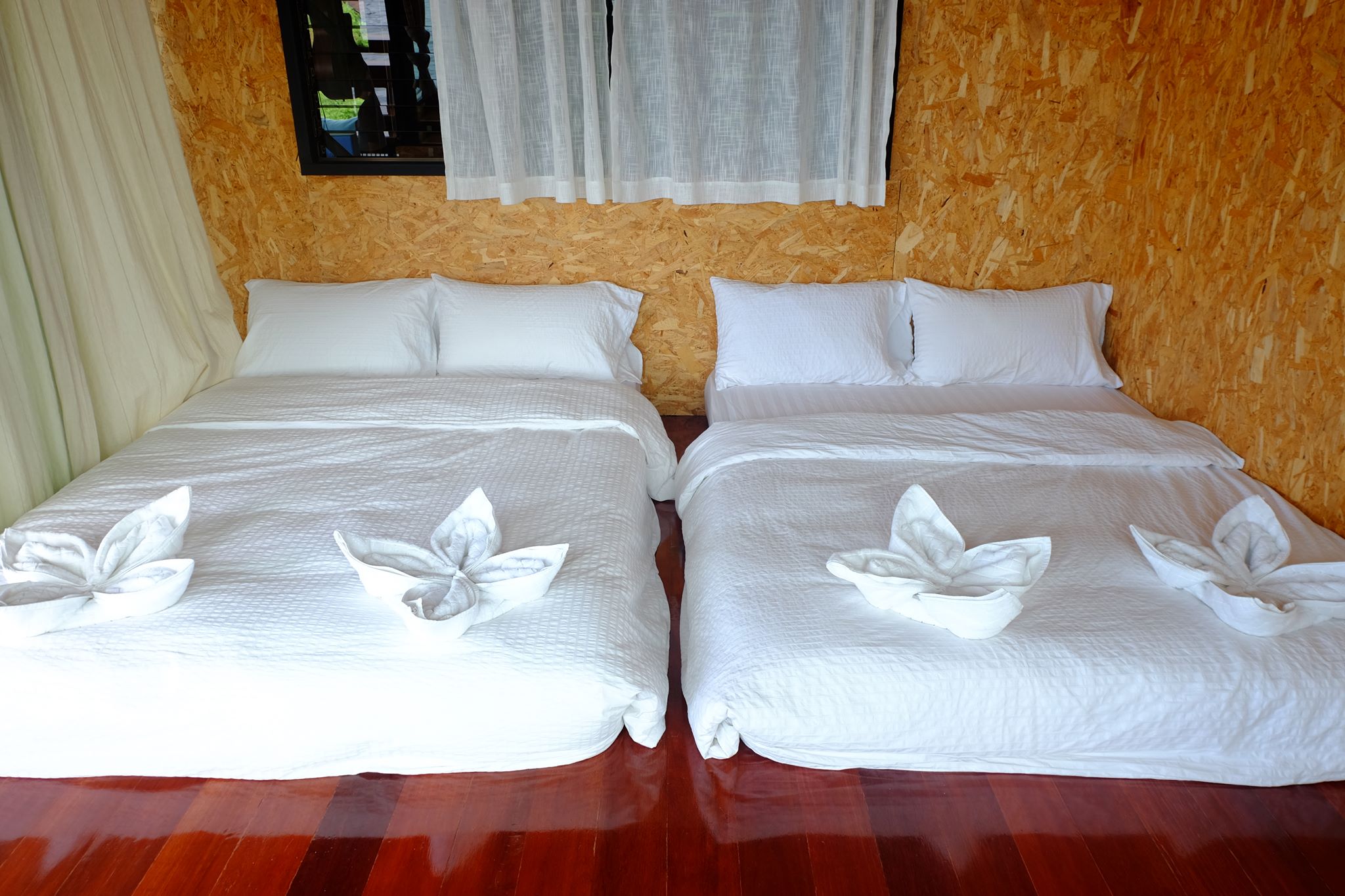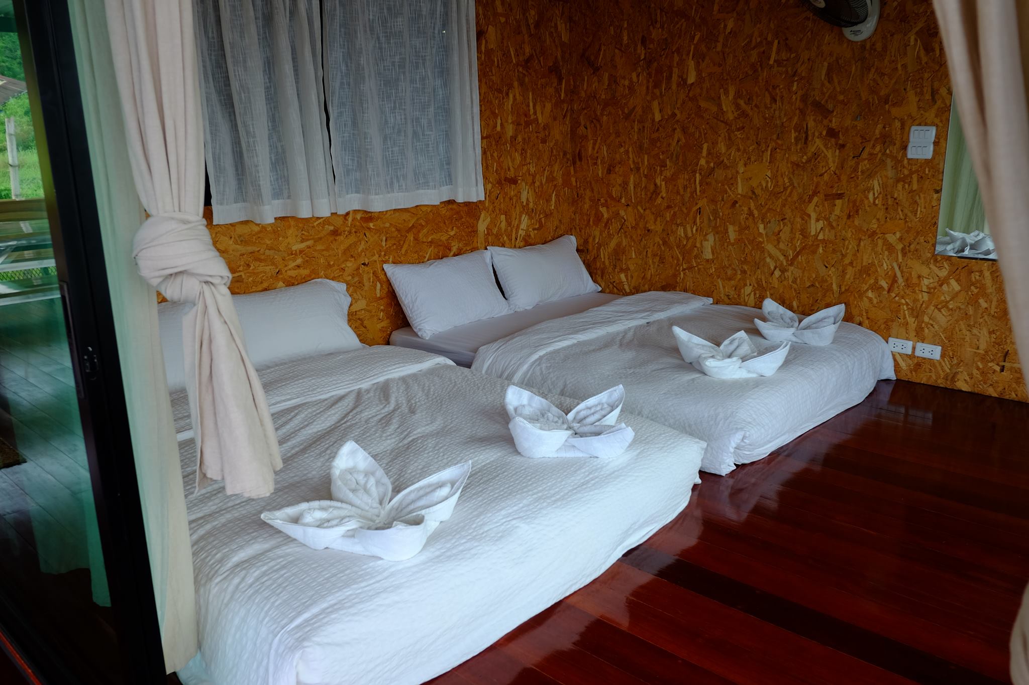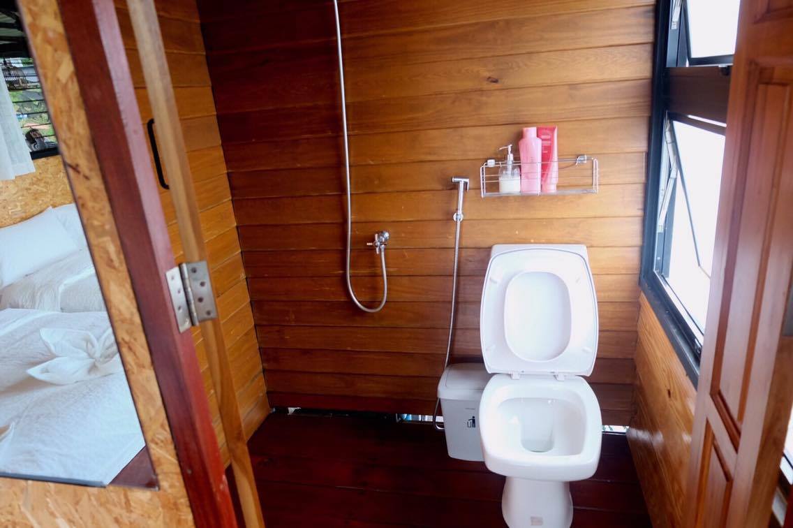 มีห้องนอนสี่ห้องและห้องน้ำในตัวทุกห้อง ห้องน้ำมี 6ห้องเด้อ ไม่ต้องแย่งกันจ้าได้เข้าทุกคน มองภาพรวมไม่ได้หรูมากแต่สะอาดดีค่ะ บรรยากาศก็ดี ไม่มีแอร์นาจามีแต่พัดลมกับลมเย็นๆจากธรรมชาตินาจา