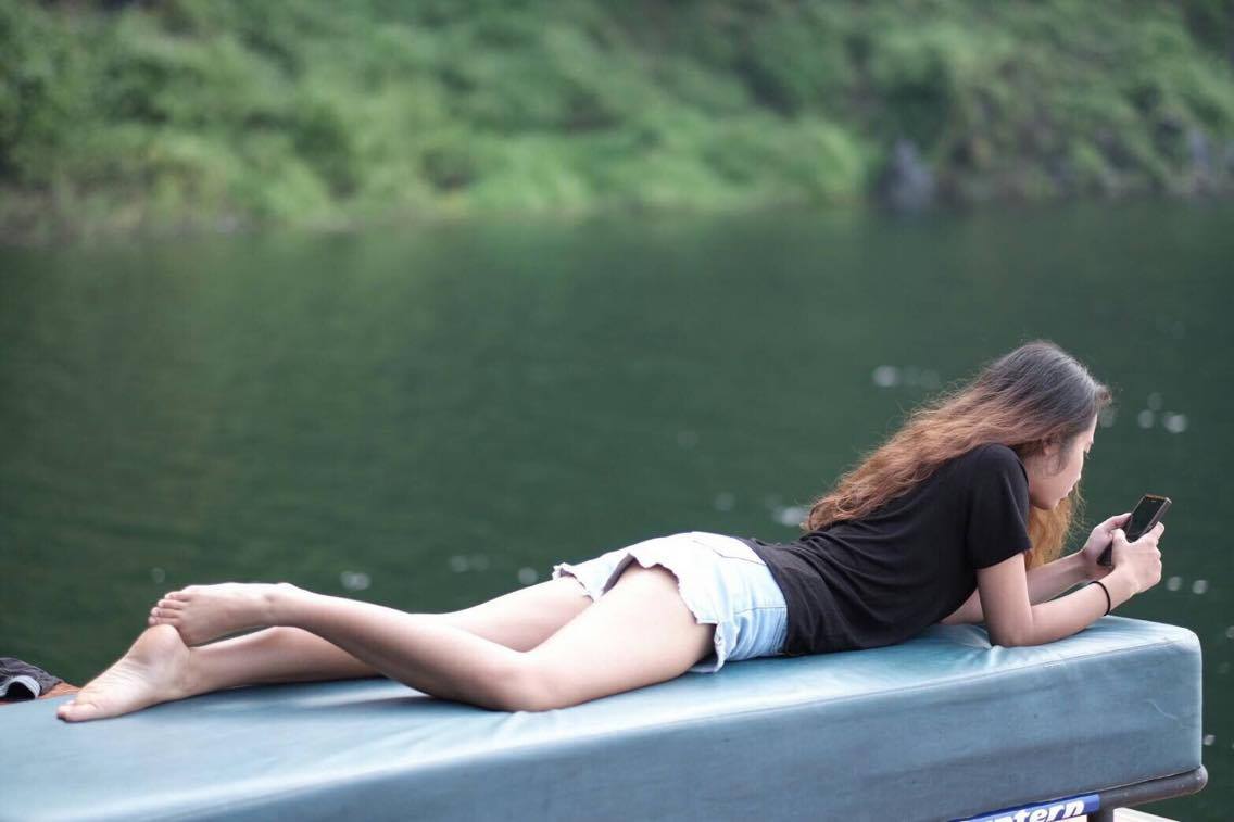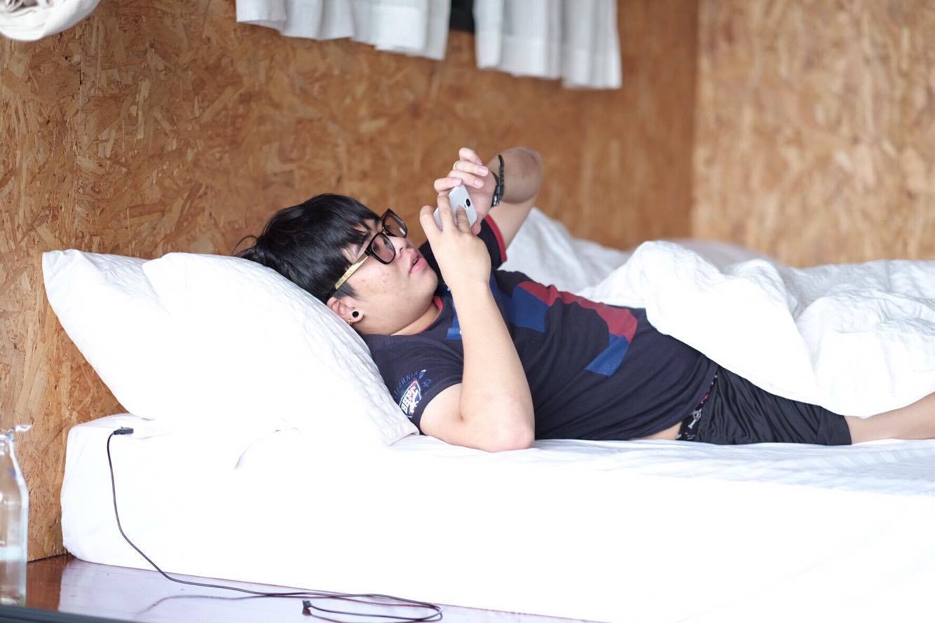 บางคนก็นอนเล่นโทรศัพท์ชิวๆ