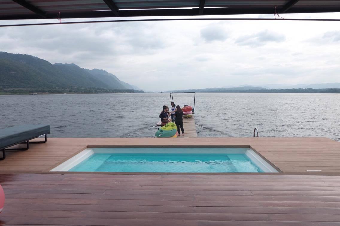 หรือถ้าใครไม่กล้าลงเล่นน้ำ บนแพก็มีสระน้ำเล็กๆไว้ให้นั่งแช่เบาๆ ปล. ส่วนเป็ดเราเอามาเอง