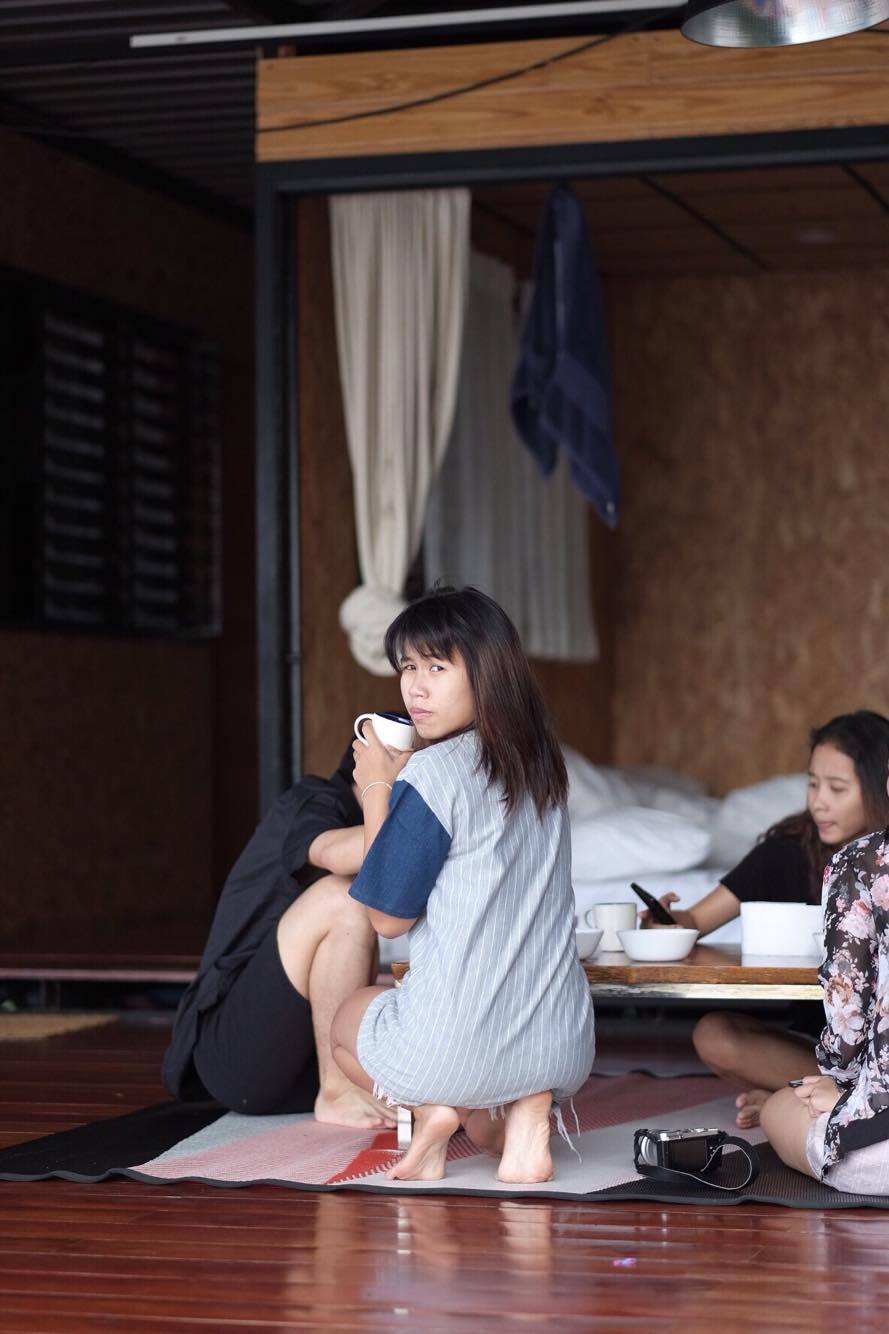 เมื่อหนังท้องตึง หนังตาก็เริ่มหย่อน บวกฟ้าที่เริ่มมืด อากาศที่เริ่มเย็น ลมพัดอ่อนๆ แต่วัยรุ่นอย่างเราเวลานี้ไม่ใช่เวลานอนจ้า มานั่งคุยนั่งจิบชากันเบาๆ เปิดเพลงคลอรออาหารย่อย มีเล่นเกมส์กระดาษบ้างนิดหน่อยพอมีเงินเก็บ 55555 จนเวลาประมาณเที่ยงคือก็ค่อยเข้านอนกัน เราตั้งกล้องถ่ายดาวไว้กันด้วย