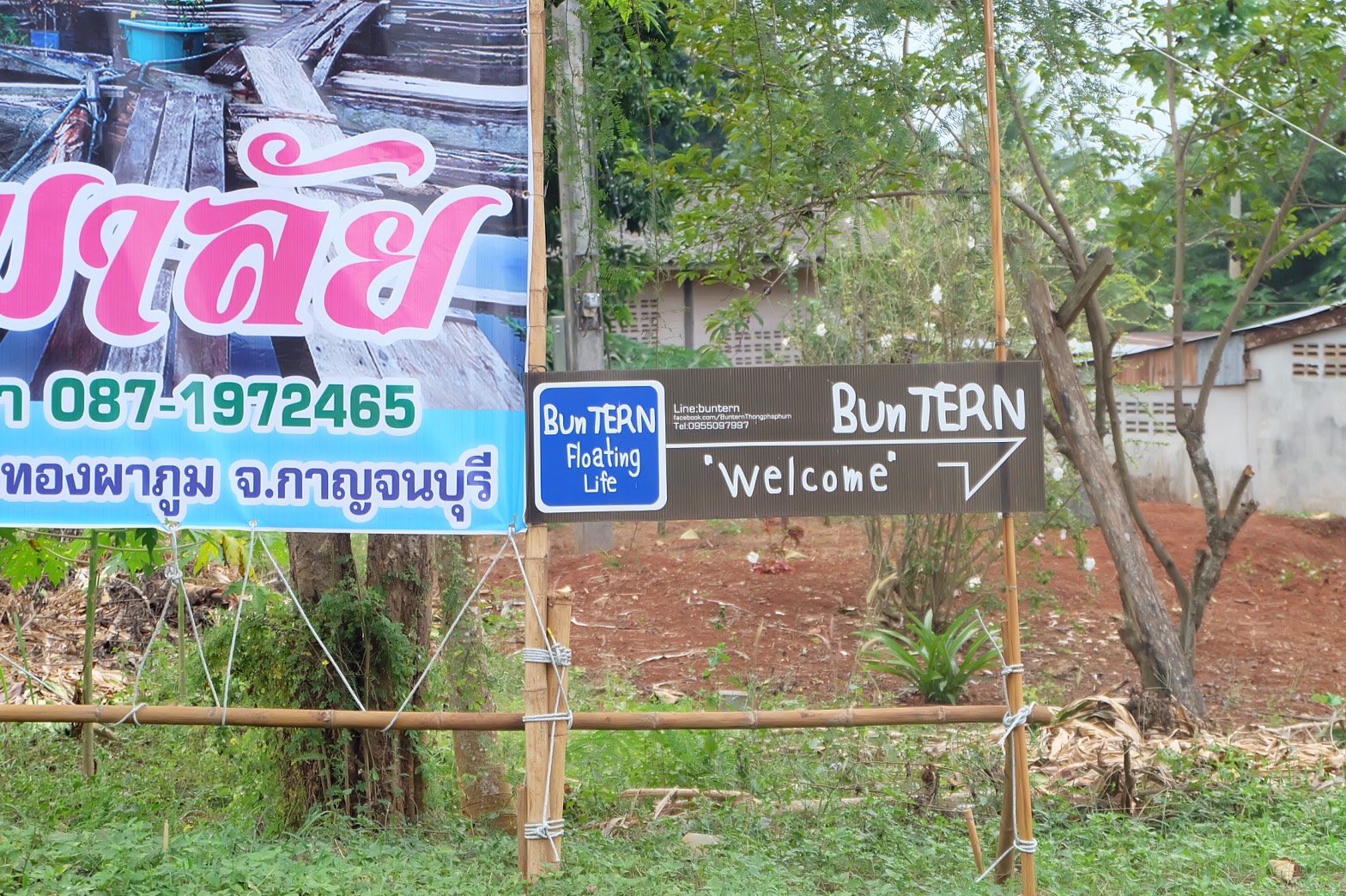 นี่ไงป้ายแพของเรา อินดี้ๆนิดนึง เหมือนเค้าเน้นความทนทานในการใช้งาน ไม่เน้นใหญ่ เราสามารถนำรถของเราไปจอดทางด้านซ้ายมือก่อนลงแพ ไม่ต้องกลัวรถหายนะค่ะ เพราะชาวบ้านที่นี่เค้าดูแลกันเสมือนญาติมิตร ด้วยทริปนี้เป็นทริปใหญ่มีเพื่อนอีกกลุ่มที่ต้องนั่งรถตู้มาเองนาจาเพราะรถส่วนตัวเต็ม 555 ออกจากกรุงเทพโดยนั่งรถบัสสีฟ้าๆอ่ะค่ะ กรุงเทพ-กาญจนบุรี รถเต็มดีค่ะ ฝรั่งก็มี จุดหมายปลายทางสุดป้ายค่ะ เค้าเรียกขนส่งมั้งไม่แน่ใจ พอลงจากบัสก็หารถตู้ต่อขึ้นไปทองผาภูมิจ้าา