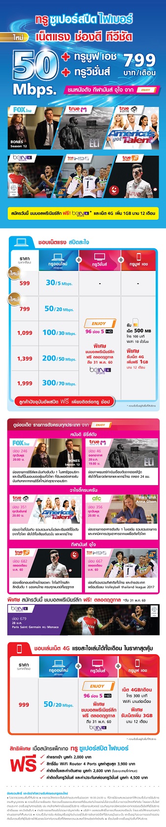 ใช้เน็ต true cable 30/5 อยู่ สามารถขอเปลี่ยนเป็น 50/20 ได้ไมครับ