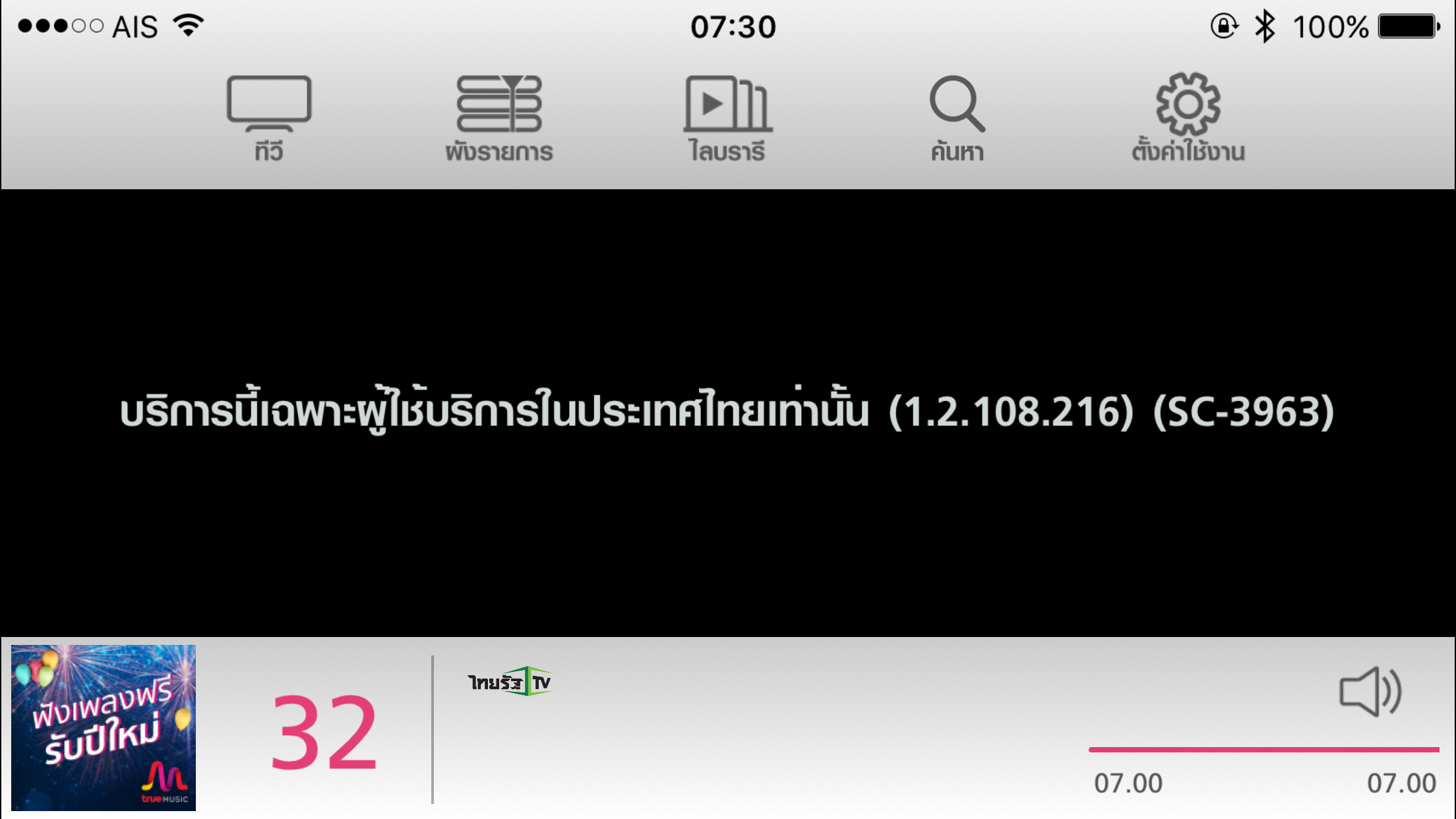 true anywhere ต่อผ่าน wifi tot ดูได้แค่บางช่องครับ ช่องที่ดูไม่ได้ขึ้นบริการเฉพาะผู้ใช้ในประเทศไทยเท่านั้น