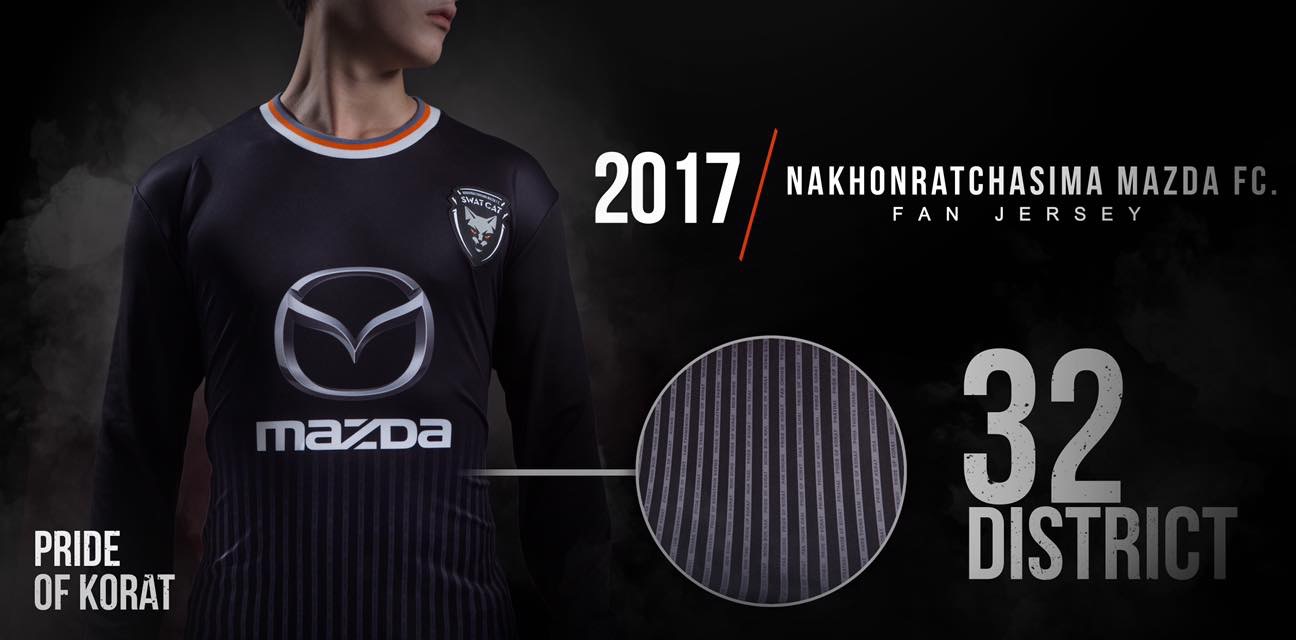 ชุดแข่งสโมสรนครราชสีมา มาสด้า เอฟซี ฤดูกาล 2017-2018 เวอร์ชั่นแฟนบอลมีทั้งหมด 3 สี ประกอบไปด้วย ส้ม,ดำ และ ฟ้า