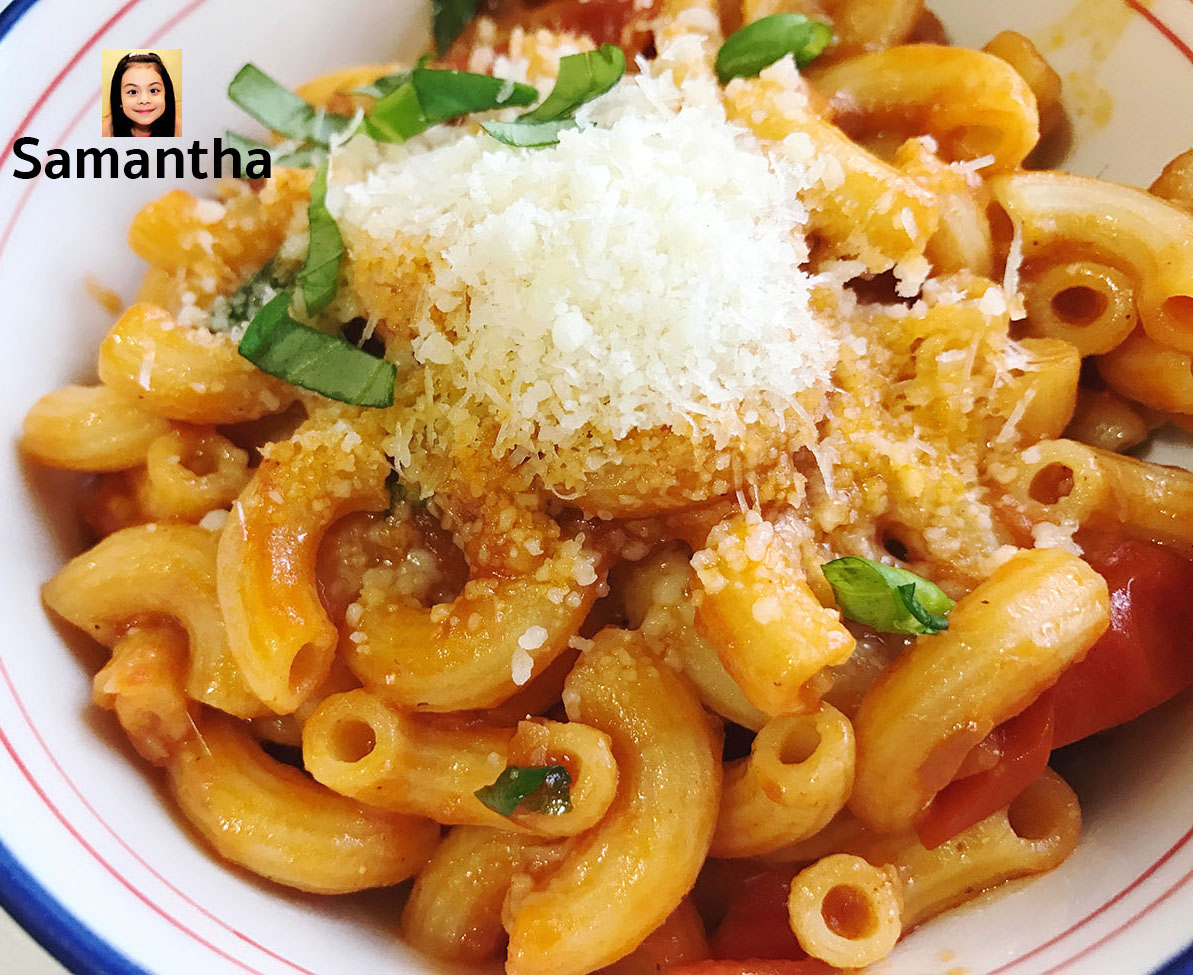 พาสต้าผัดซอสมะเขือเทศ+มายองเนส เมนูนี้ จะเพิ่มความหอมน่ารับประทานด้วยกลิ่นมายองเนสเกรียมๆจ้า เครื่องปรุง+วัตถุดิบ เส้นพาสต้า (ชอบเส้นแบบไหนใช้ตามชอบเลยจ้า) แฮม (ไส้กรอกก็ได้) ผักตามชอบ เชสด้าชีส (ไม่