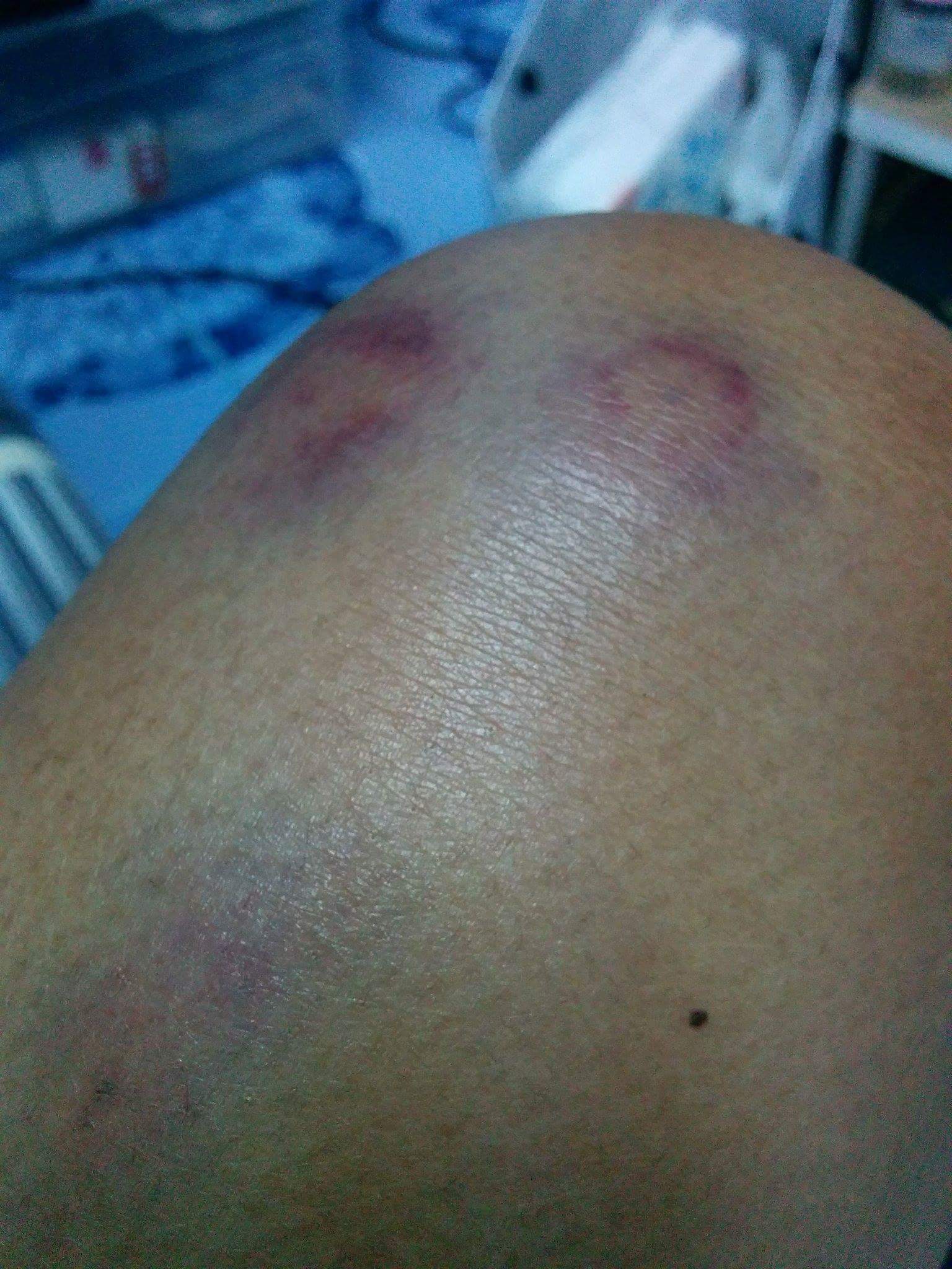 แล้วเจ้าหน้าที่เขาก็วิทยุคุยกันประมาณว่าไอ้ตัวดำกัดคนอีกแล้ว แล้วก็คุยกันอยู่ซักพัก แล้วก้มาถามเราว่าไปหาหมอมั้ย ไปให้หมอดูหน่อยเพราะจะได้ฉีดยาด้วย ทีแรกผมก็ลังเลว่าจะไปดีมั้ย เพราะมันจะเริ่มค่ำแล้ว กลัวว่าจะกลับบ้านลำบากเพราะนึกครึ้มขับมอไซค์มาเที่ยวกัน แต่คิดไปคิดมาเพื่อความปลอดภัยไปให้หมอดูซักหน่อยดีกว่า ก็เลยตกลงไป ซักพักก็มีคนที่ดูเป็นเจ้าหน้าที่ดูแลประจำที่นี่มาดูเรา(สอบถามทีหลังว่าชื่อคุณนก) ทันทีที่เจอเราคุณนกรีบยกมือไหว้ขอโทษเราเลยสำหรับเรื่องที่เกิดขึ้น คือเท่าที่ดูถ้าน้องเขากราบเราได้คงกราบไปแล้ว 555 ผมและแฟนเลยบอกไม่เป็นไร ไม่มีใครอยากให้เกิดหรอกเหตุการณ์แบบนี้ คุณนกและ1ในเจ้าหน้าที่ที่มาดูเราตอนแรกเป็นคนขับรถพาเราไปโรงพยาบาล และรับผิดชอบค่าใช้จ่ายให้ทั้งหมด