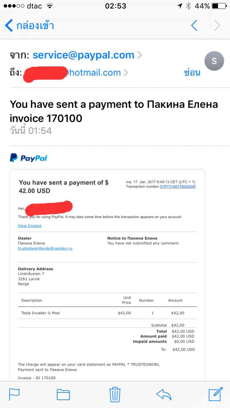 ไม่ได้ใช้PayPalมานาน อยู่ๆมีใบแจ้งหนี้มาให้ คืออะไรคะ?