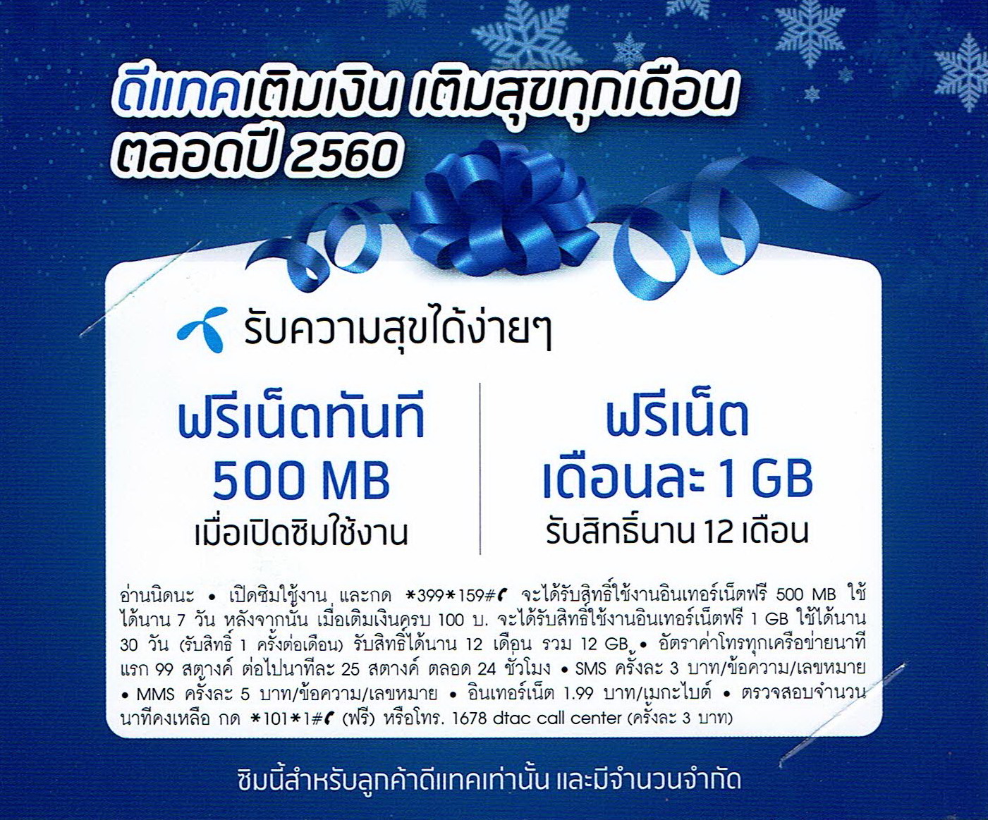 ซิมของขวัญปีใหม่ 2560-2017 ได้มาจากดีแทคฮอล