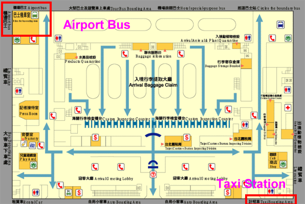 ถ้าเดินไปทางขวา จะไปบูทรับ witfi router รวมถึงรับซิมการ์ดที่ซื้อล่วงหน้าออนไลน์ กับ เอเย่นท่องเที่ยวบางเจ้า ครับ และ เดินไปขี้นรถบัสกั๋วกวง, Ubus, ไปไทเปและที่อื่นๆ