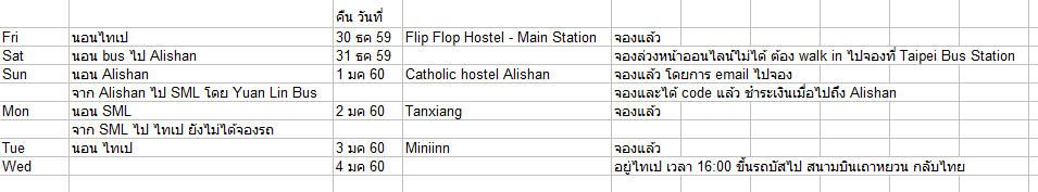 ก่อนไป ผมได้ วางแผนคร่าวๆ ไว้ว่าแต่ละวัน นอนที่ไหน ดังนี้