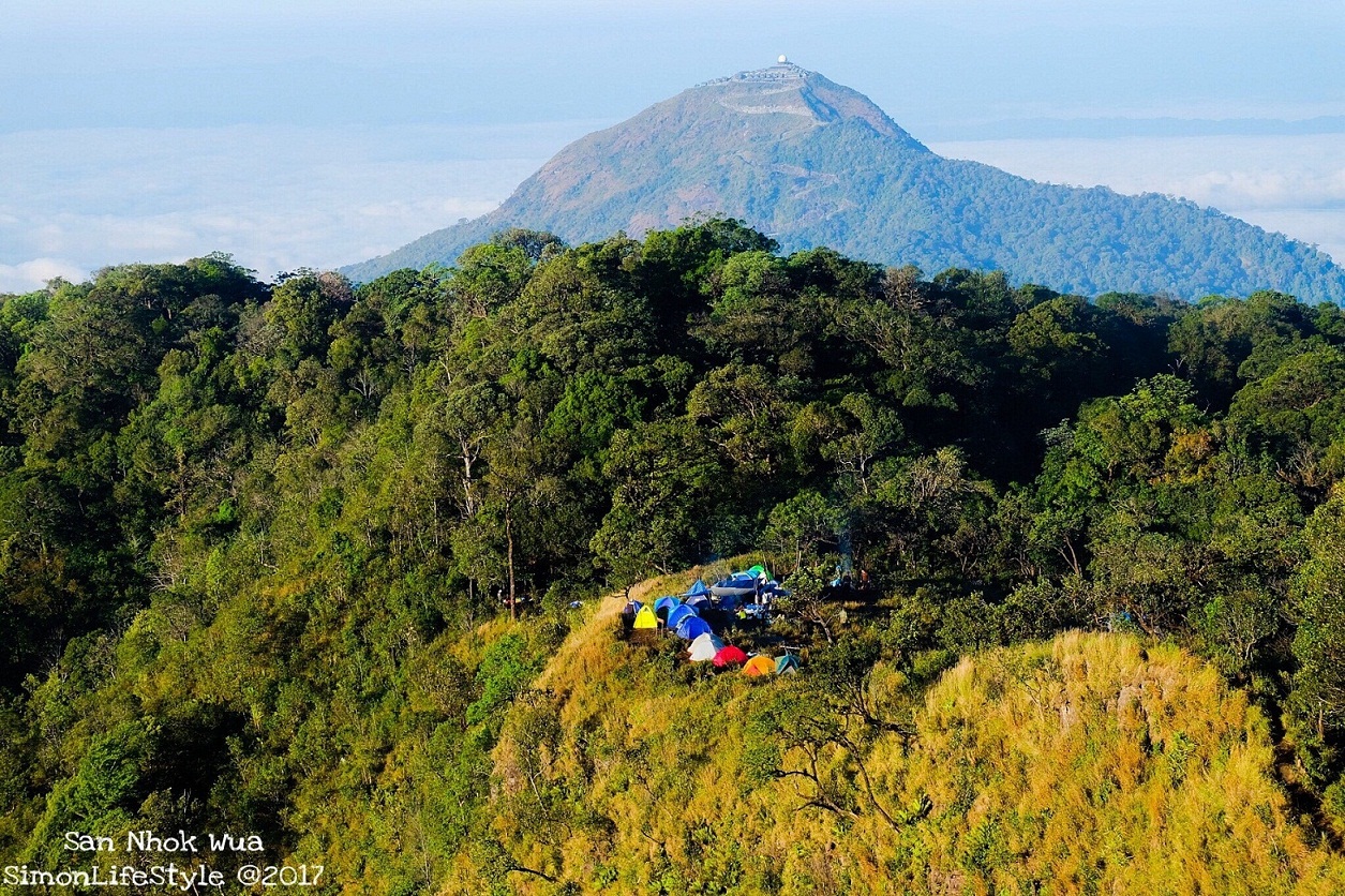 มองจากจุดกางเต้นท์ขึ้นไปจะเห็นสันหนอกเล็ก..ถ้าสันหนอกใหญ่ต้องเดินต่อไปอีก