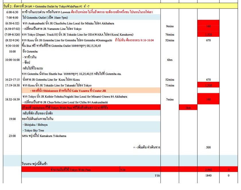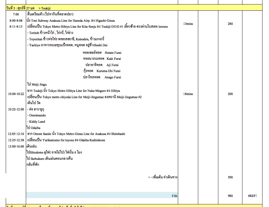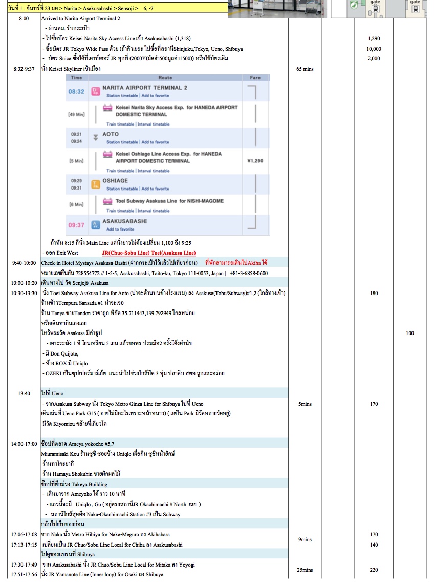 จะไปโตเกียวอาทิตย์หน้า รบกวนช่วยตรวจแพลนทีค่ะ