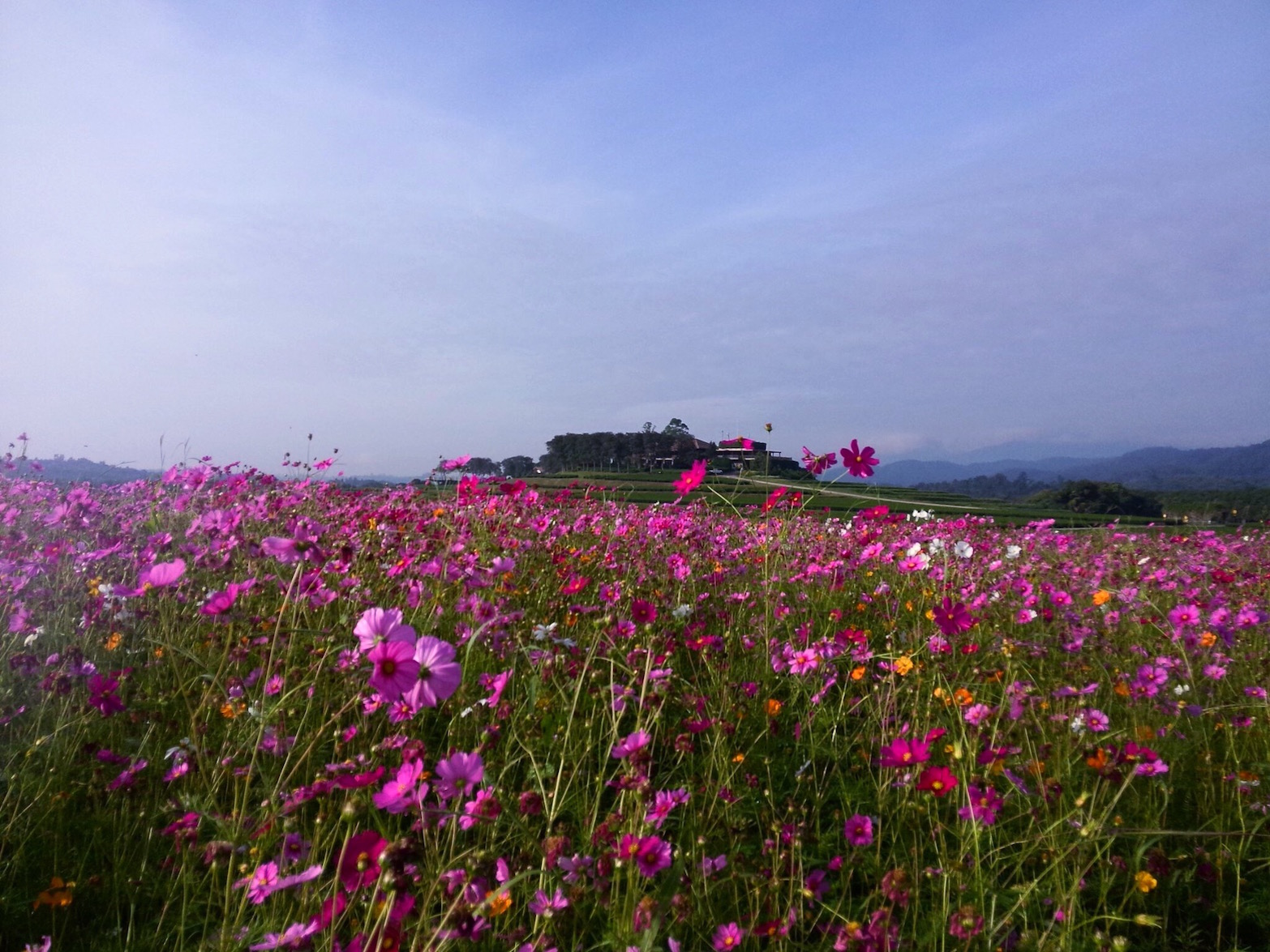 จากนั้นเราได้ออกเดินทางต่อมายังพระตำหนักภูพิงคราชนิเวศน์ แต่เมื่อเราเดินทางมาถึงที่พระตำหนัก หมอกลงหนามากบวกกับฝนตกพร่ำๆ เลยเดินถ่ายรูปไม่ค่อยสะดวกเท่าไร (เพราะกลัวกล้องจะเปียก) ก็เลยเก็บภาพความสวยงามของธรรมชาติและดออกไม้มาได้แค่บางส่วน