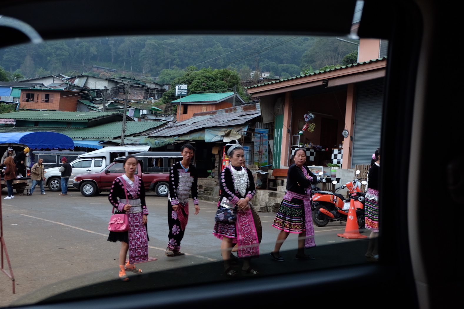เราขับรถกันมาเรื่อยๆแบบติดต่อกันเกือบ 9 ชั่วโมงก็มาถึงตลาดแจ้ห่ม เวลาโดยประมาณ ตึ 5 ได้ อากาศกำลังดีเลย 18 - 20 องศาถือว่าไม่หนาวมาก แต่ที่ตื่นเต้นคือเส้นทางตอนการเดินทางมากกว่ารู้สึกลุ้นตลอดทางเพราะโค้งเยอะมาก แต่โชคดีที่มีคนขับชำนาญทางเลยไม่น่ากังวลเท่าไร