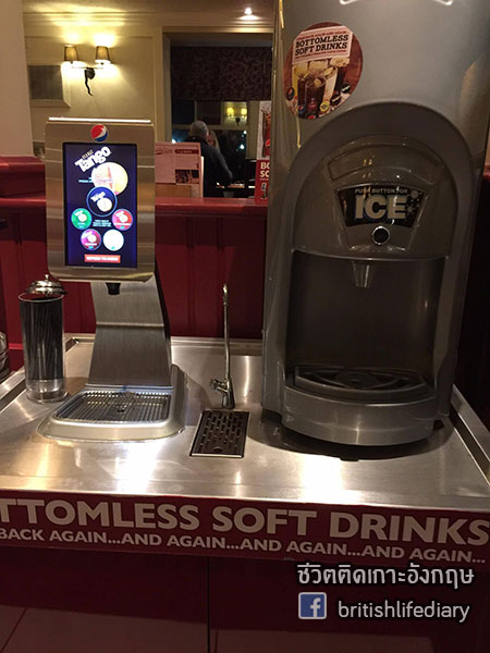กลับมาที่โต๊ะแล้วก็เดินไปเอาเครื่องดื่มค่ะ เราสั่งแบบ bottomless ซึ่งก็เหมือนรีฟิลนั่นเองค่ะ เติมได้ไม่อั้น อันนี้เป็นแบบจอสัมผัสซะด้วย มีเครื่องดื่มหลายแบบเลยค่ะ ของโปรดของเราคือเป๊ปซี่ วานิลลา กับมะนาวค่ะ น้ำเปล่าก็มีให้ฟรีเหมือนกันนะคะ