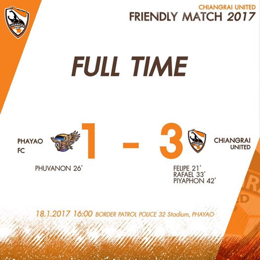 เชียงรายอุ่นเครื่องชนะ 3-1 พะเยา ธนบูรณ์ สวมปอกเเขนกัปตันทีมเชียงราย