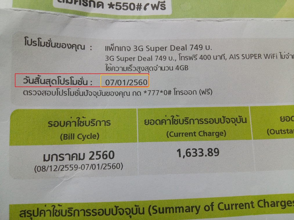 ปล.2 แต่ในบิลบอก วันสิ้นสุดโปรโมชั่น คือ 7/1/2560 ขัดแย้งกับที่ จนท.บอก ว่า 7 Feb 2017
