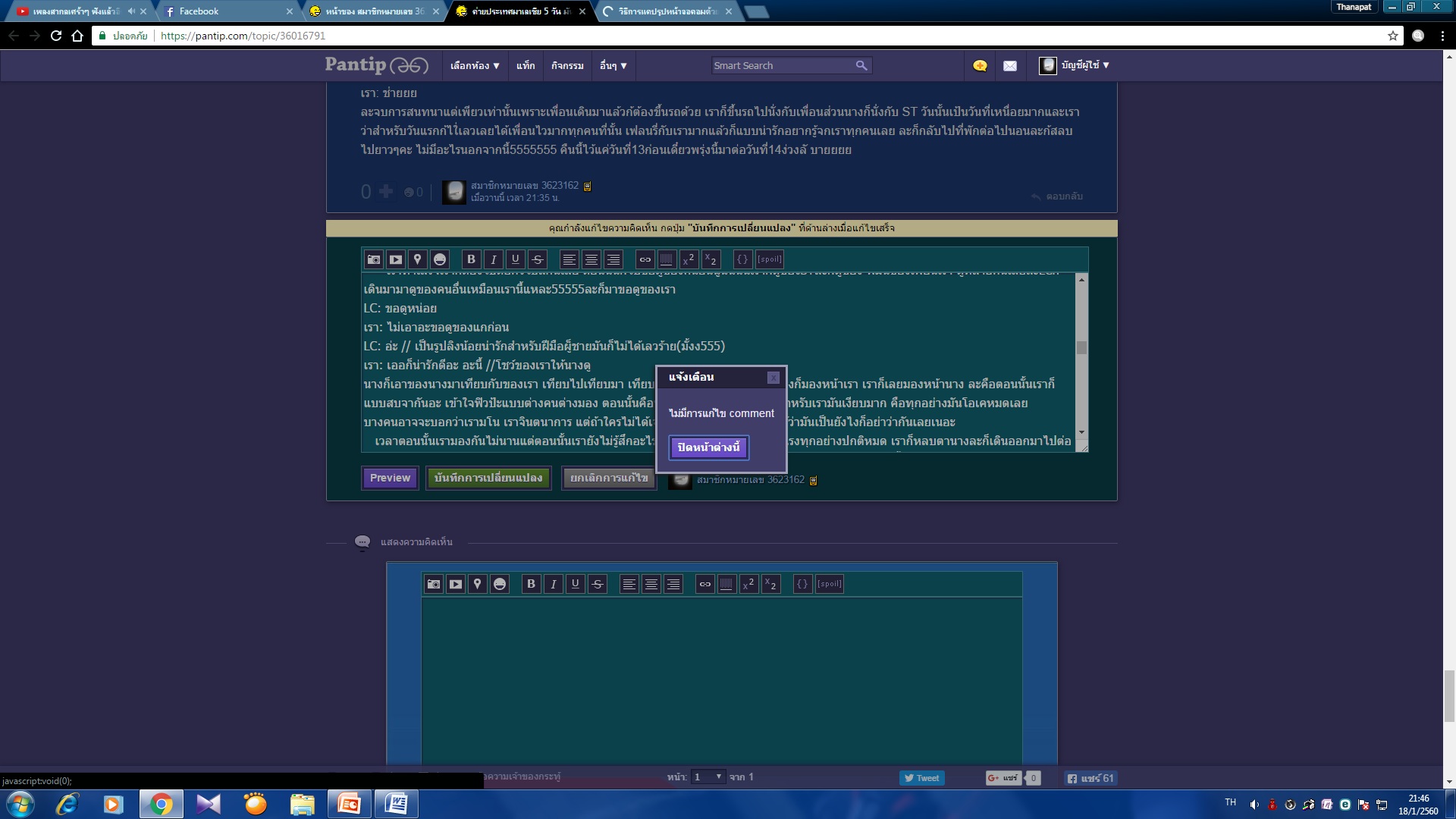 แก้ไขคอมเม้นไม่ได้ทำไงดี