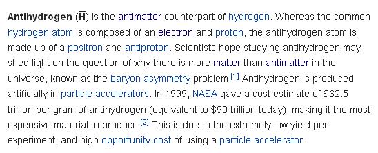ทำไม antihydrogen จึงมีราคาแพงมาก (กรัมละ $90 trillion) และเกี่ยวข้องหรือมีความสำคัญกับศาสนามากขนาดไหนครับ