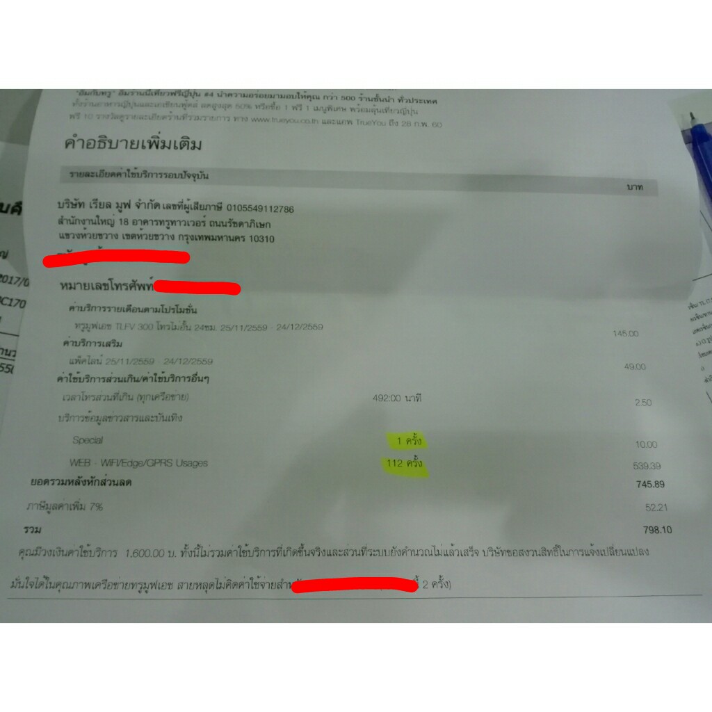 sms ไม่สงสัย แต่ค่า internet ละ ดูใน iservice ก็ขึ้นเวลาที่ใช้ประมาณสายๆ วันธรรมดา ซึ่งผมอยู่ออฟฟิศ ผมอยู่ฝ่ายไอที ใช้ไวไฟบริษัทได้อยู่แล้ว (และแถวนั้นไม่มีสัญญาณไวไฟของทรูเพราะไม่ได้อยู่ในเมือง) โทรศัพท์ผมก็ใช้แบบที่มันจำกัดได้ว่าจะใช้เน็ตแค่แอปไหน และไม่ได้เปิดดูคลิปหรือวีดีโอที่มาจากลิ้งค์ในไลน์เพื่อเชื่อมต่อไปภายนอกเหมือนที่บอกมาหลังไมค์ ซึ่งเสียเงิน (อันนี้ผมรู้) วีดีโอคอล ฟรีคอล ก็ไม่ได้ใช้ เพราะรู้ว่าเสียเงิน ถ้าผมไม่รู้บิลคงมาแบบนี้หลายเดือนแล้ว แต่เพิ่งมามีเดือนนี้ ขอรายละเอียดไปก็ไม่มี แล้วผมได้อะไร ?