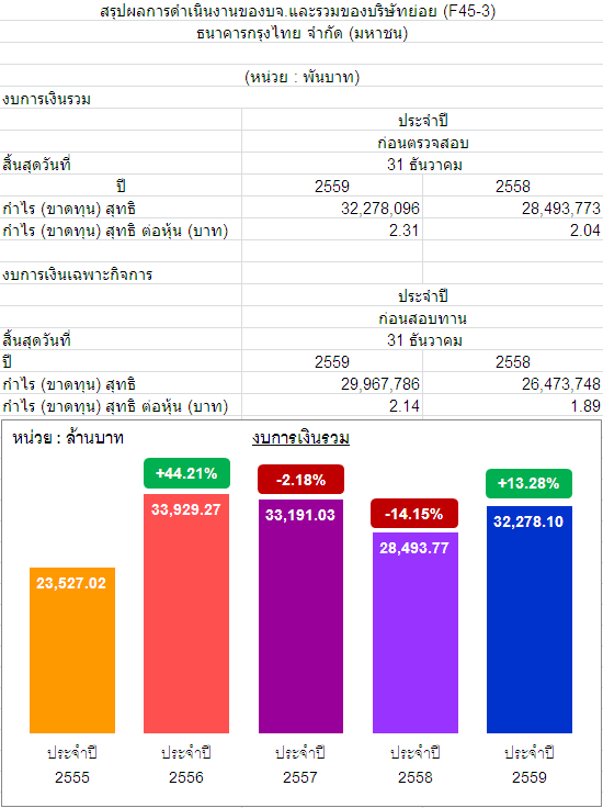 สรุปผลการดำเนินงาน รายปี 2559 KTB , KTC , BBL , SCB