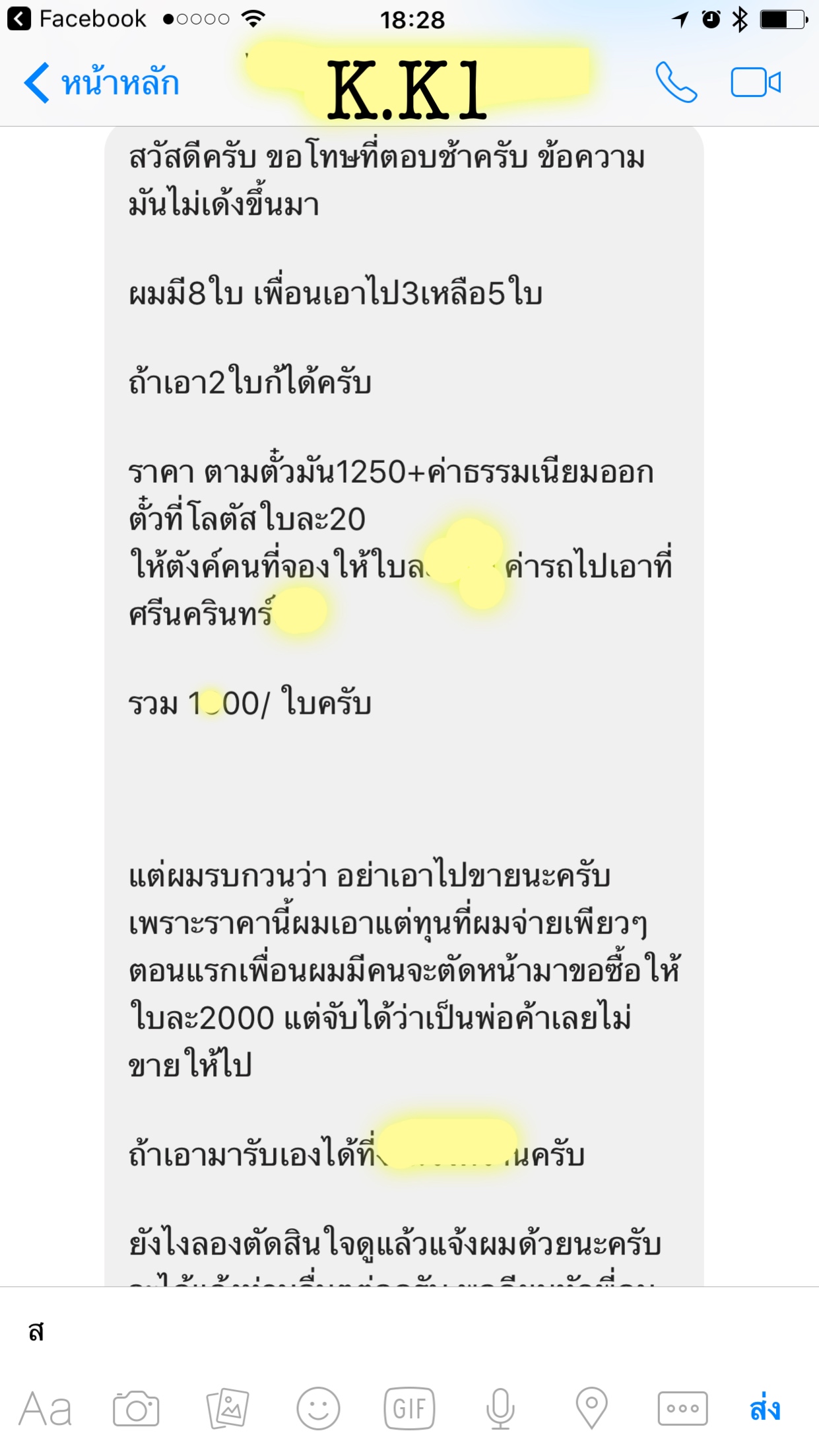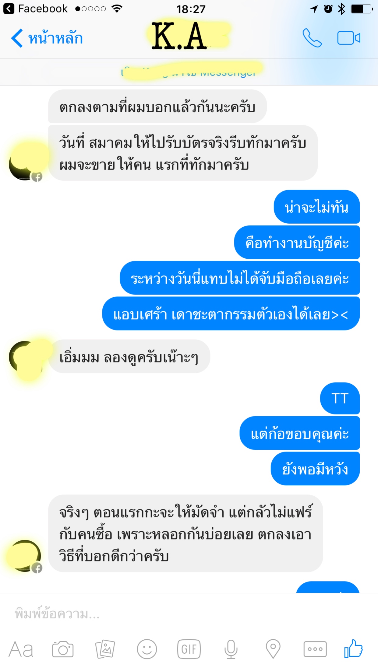 จนไปเจอคนจะส่งต่อ แต่ไม่แน่ใจว่าตั๋วไปแล้วรึยังก็ส่งข้อความinboxไปหา