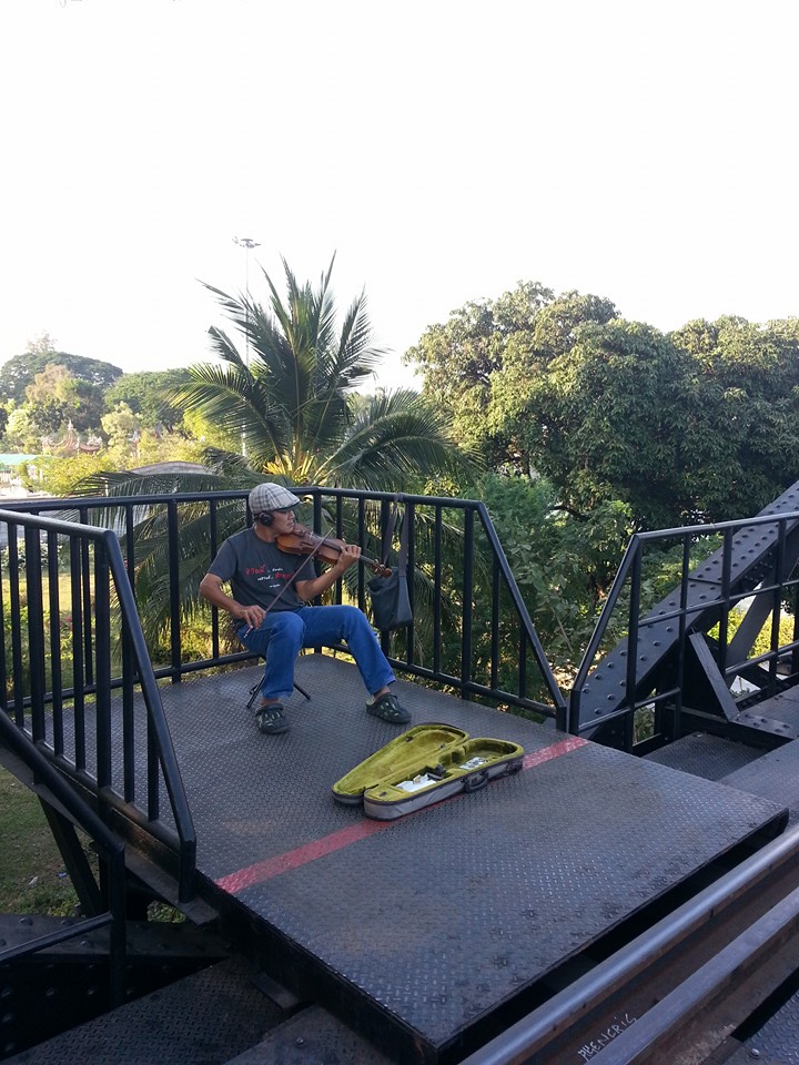 นักดนตรีท่านนี้ครับผม รู้สึกตอนนั้นพี่แกจะสีเพลง The Show ของ Lenka สุดยอดมากครับ ละมุนสุดๆ ผมมีความสุขสุดๆ ผมให้พี่เขาไป 20 บาท ในการสร้างความสุข ในฐานะนักดนตรีเหมือนกัน แต่ไม่ได้ชวนพี่เขาคุยนะครับ ไม่รบกวนดีกว่า